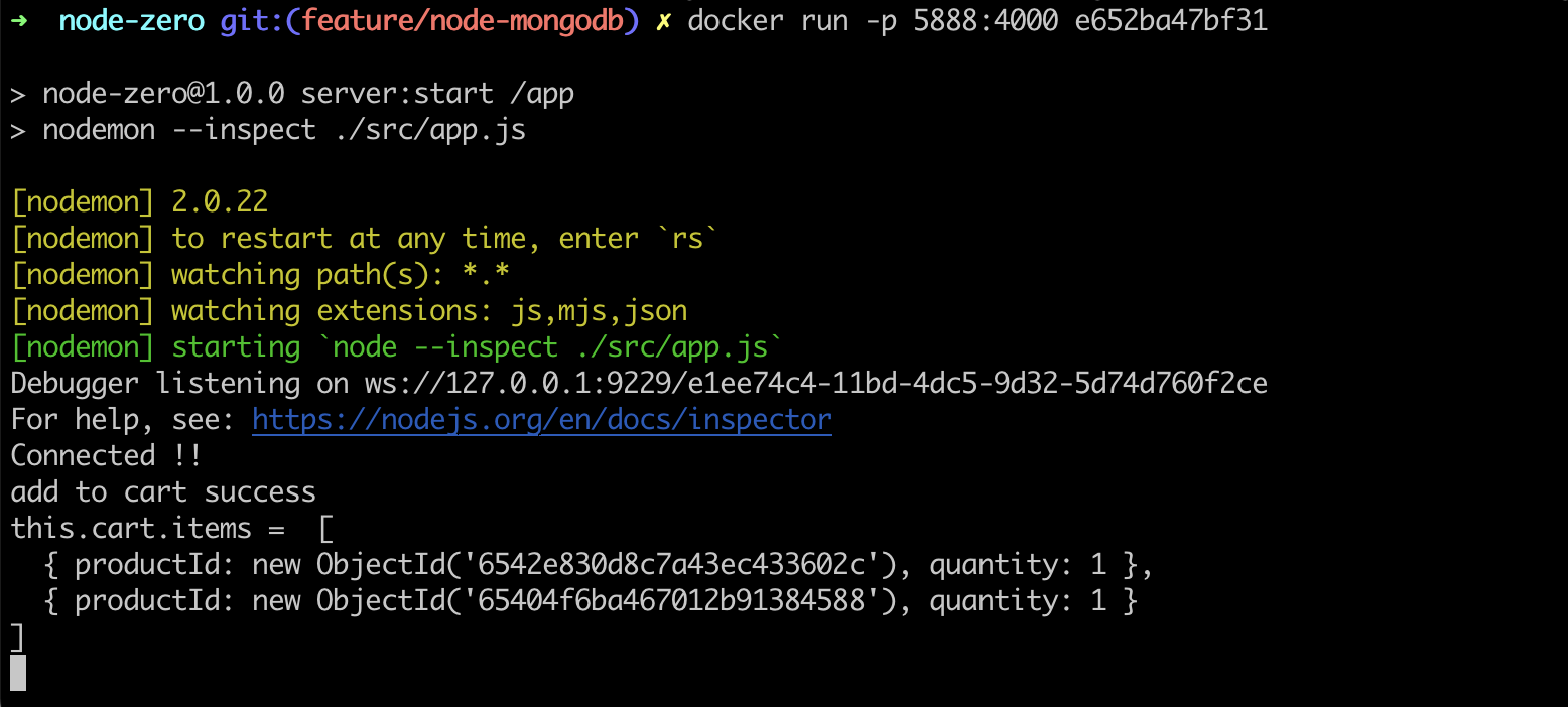 위 커맨드는 detached 모드로 시작하더라도 컨테이너에서 발생한 로그를 보여 줍니다.