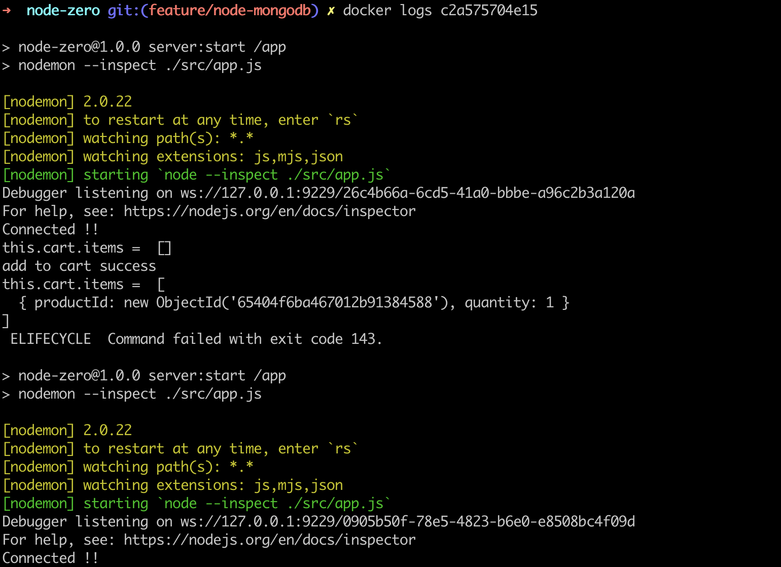 얘는 -f 옵션으로 터미널에 블럭 걸고 이후 계속 컨테이너 로그를 추적할수 있습니다.