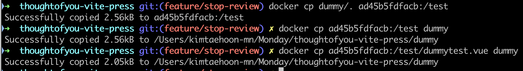 > docker cp ad45b5fdfacb:/test/dummytest.vue dummy